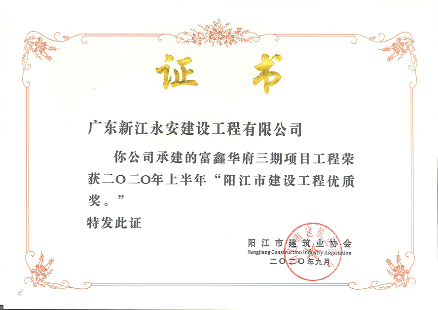 廣東新江永安建設集團有限公司是國.家一級資質企業,成立于二〇〇六年三月,注冊資本為壹億元人民幣,主要從事市政公用工程、建筑工程、公路工程、電力工程、城市及道路照明工程、交通安全設施工程等領域的專業施工。 經過十多年的發(fā)展,公司現已取得建設行政主管部門頒發(fā)的建筑工程施工總承包一級、市政公用工程施工總承包二級、電力工程施工總承包二級、機電工程施工總承包二級、建筑裝修裝飾工程專業承包一級、消防設施工程專業承包二級、防水防腐保溫工程專業承包二級、城市及道路照明工程專業承包二級、地基基礎工程專業承包二級、輸變電工程專業承包二級、環(huán)保工程專業承包二級、鋼結構工程專業承包二級、建筑機電安裝工程專業承包二級、古建筑工程專業承包二級、承裝類五級、施工勞務等16項資質的綜合性施工企業。 本公司總部立足陽江市,近年來不斷向外開拓業務,致力于向全.國各個省市發(fā)展。為推進粵港澳大灣區發(fā)展建設,在佛山設立大灣區辦公室,另在廣州、江門、東莞、惠州、中山、汕尾等地成立了分公司。公司的管理制度健全、技術力量雄厚、人員配套齊全、設備先進、員工隊伍穩(wěn)定。 公司現有各類專業技術人員226人,其中高級職稱專業技術人員13人,各種持證項目經理46人,中級職稱專業技術人員48人,各類專業技術管理人員60人,各類持證上崗人員配備齊全。 公司堅持以“守合同、重信用”為根本,以“優(yōu)質施工企業”和“建筑優(yōu)質工程”為理念,以“高標準、高水平、高質量”為發(fā)展方向。我們將以高效的服務、專業的技術為客戶提供優(yōu)質的服務,竭誠為社會打造建筑精品工程!